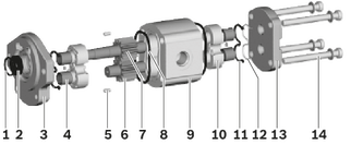 驅動軸從前蓋突出,通常采用軸密封環加以密封。軸承力由滑動軸承吸收。這些結構設計用于高壓力工況,并具有優異的無油運轉性能,尤其是在低速旋轉時。齒輪有 12 個齒。使得流量脈動和噪音排放均降至最低。